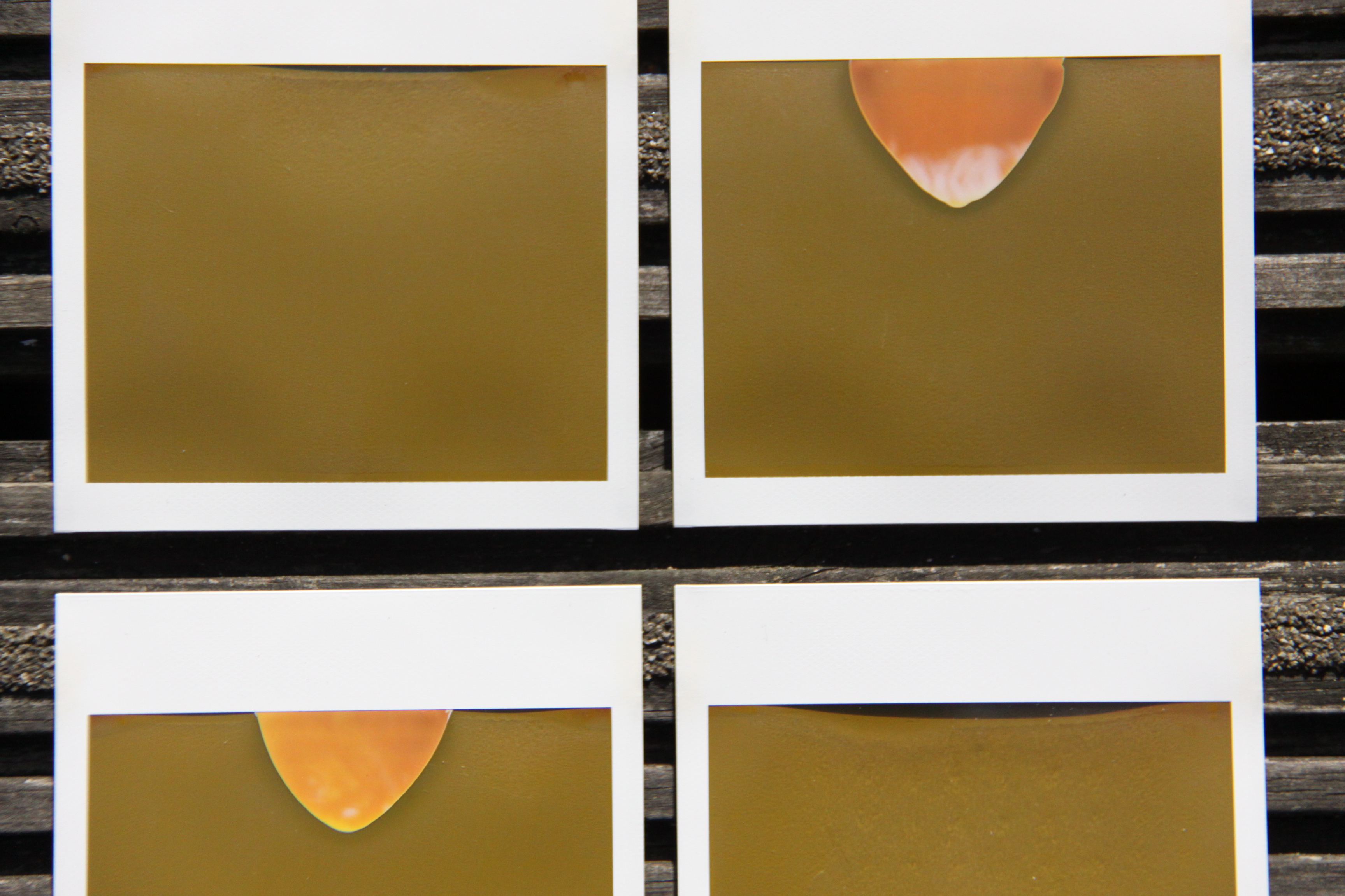 The expedition into embracing mistakes is going wonderfully. I think the polaroid photographs are the pinnacle of it. While cleaning up the boat, I found this forgotten Polaroid camera, still with the film in it. I had absolutely no idea whether it is working or not, let alone the age and condition of the film. I pointed it randomly at different objects around the boat. Two of them developed with no image, two with shapes of some sort, I am assuming as a result of the film being deficient.
