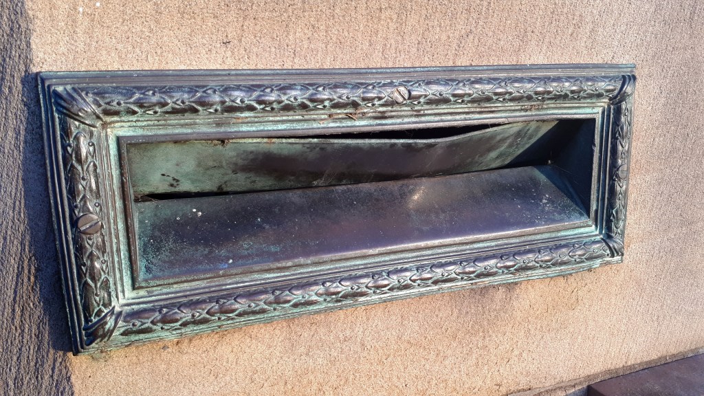 Old folders in the corner of the window, covered in dust, bent, bleached by the sun, crooked out of shape, sublimely ornamented letterbox, right place and the right time, but most importantly, eyes wide open.