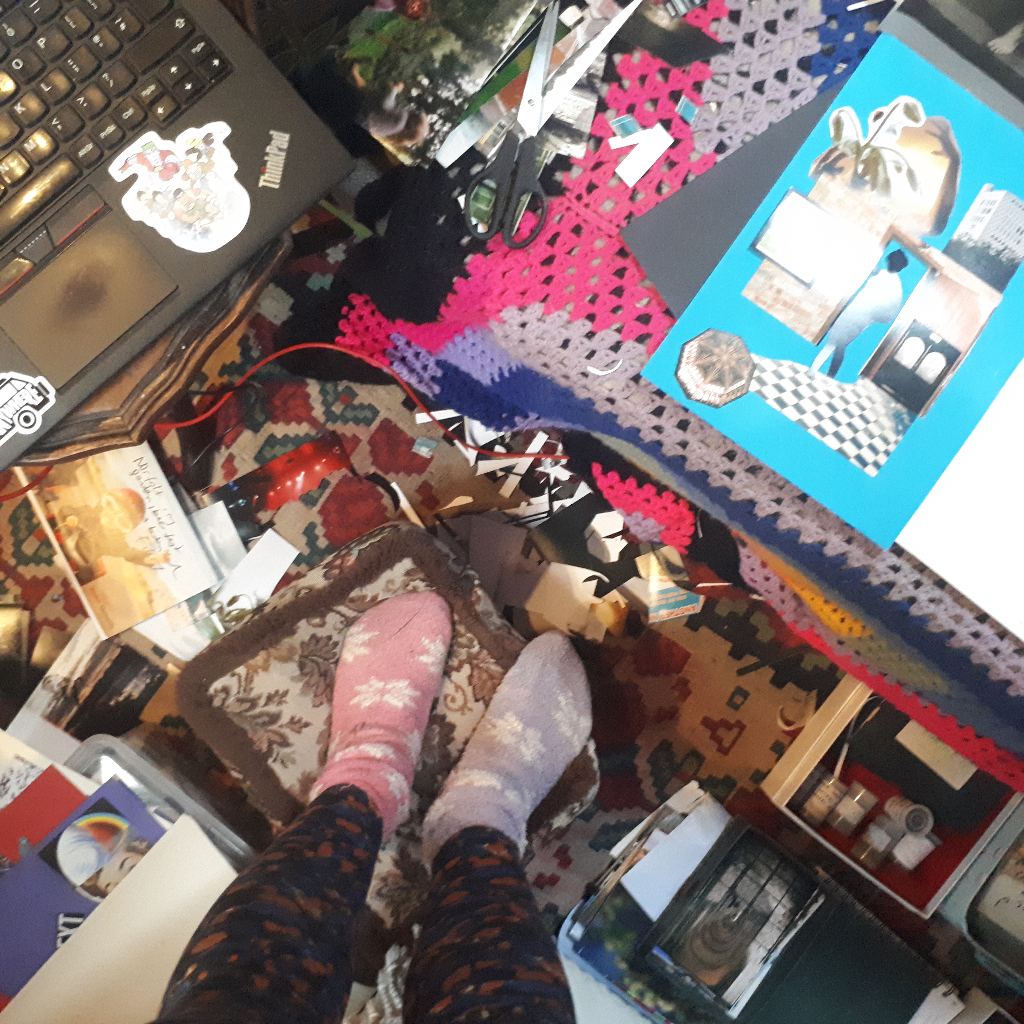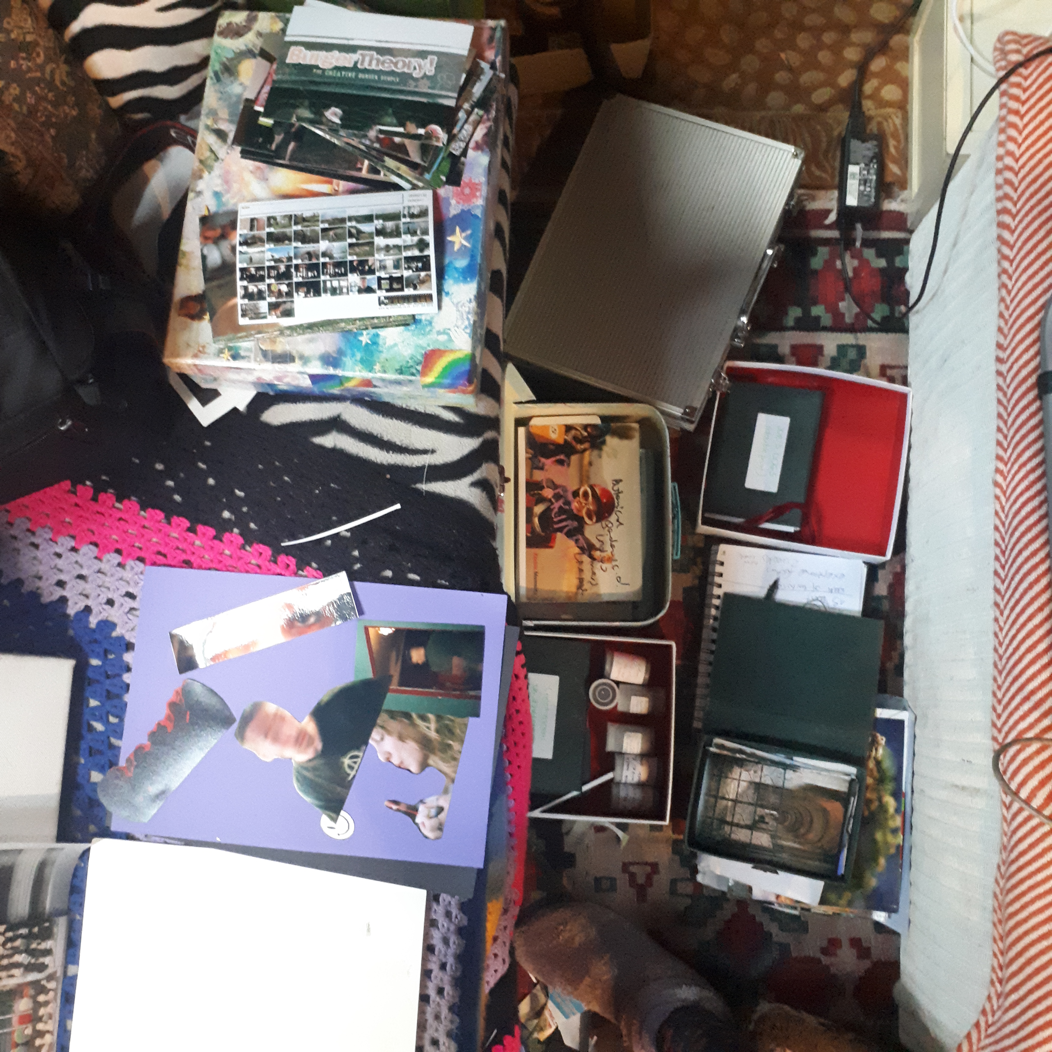 I started by getting into my storage (sofa in the living room, welcome to the narrowboat life) and taking everything out to assess what is valuable and what is not. I tried a few options before I glued the final composition together.