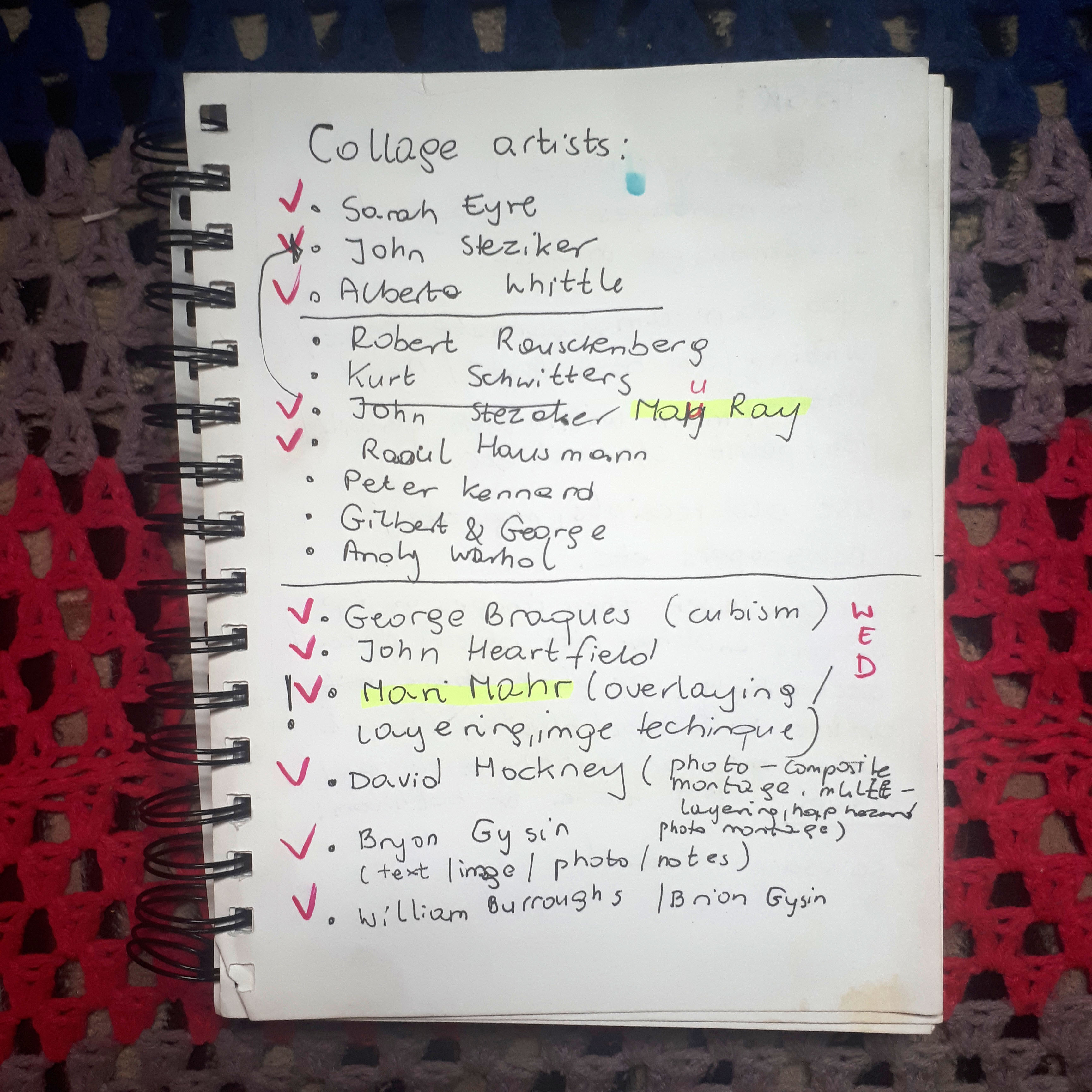 Conceptualizing for the Photomontage/Collage project. Researching plenty of artists, Instagram accounts, blogs, watching films on Youtube, planning, and brainstorming.