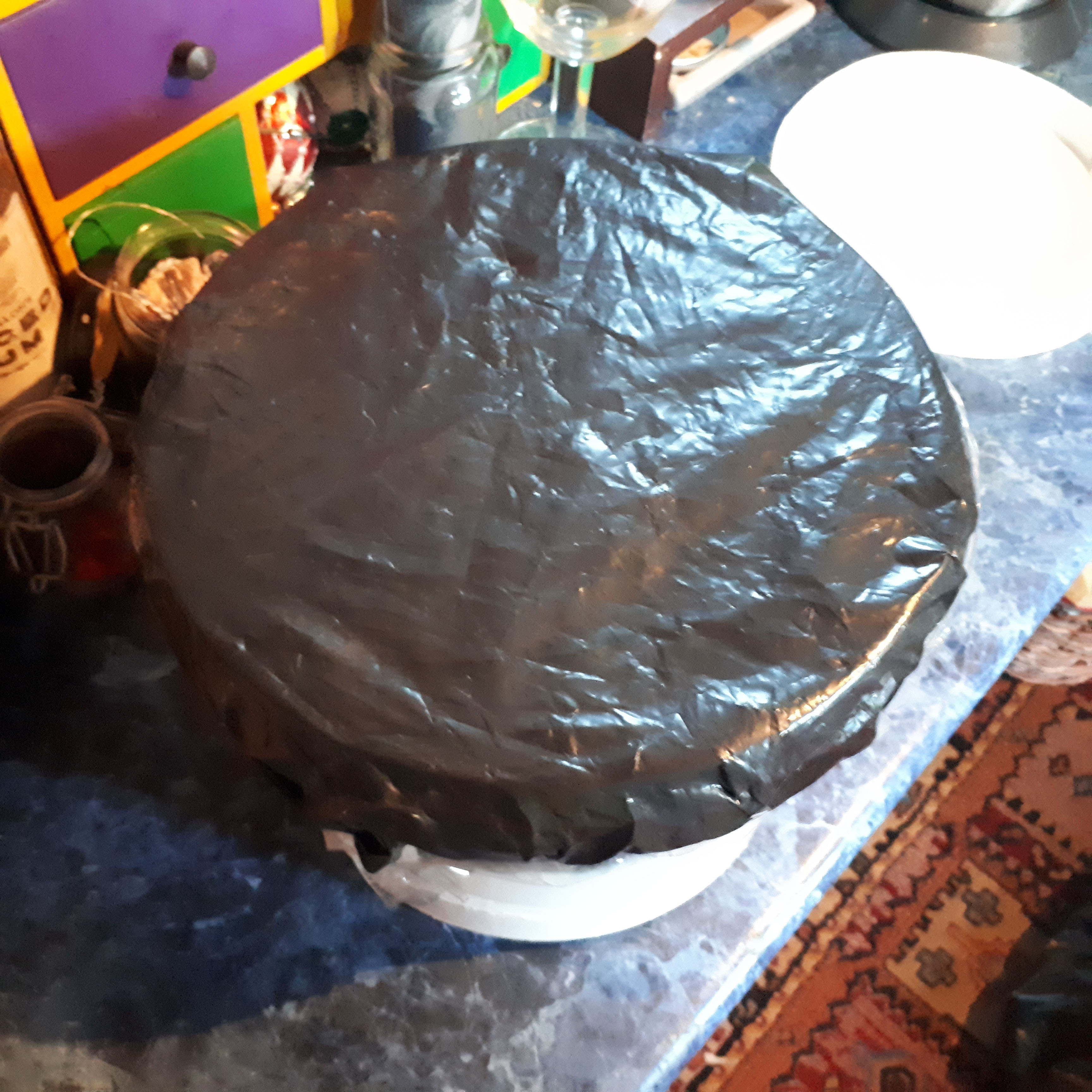 In preparation, I cut the bottom of a bucket and covered it with a bin bag, taping the edges with cling film. Regrettably, the material was notably rugged and bumpy, and I couldn’t accomplish the desired effect. Alternatively, I decided to use cling film as it has a smoother surface.