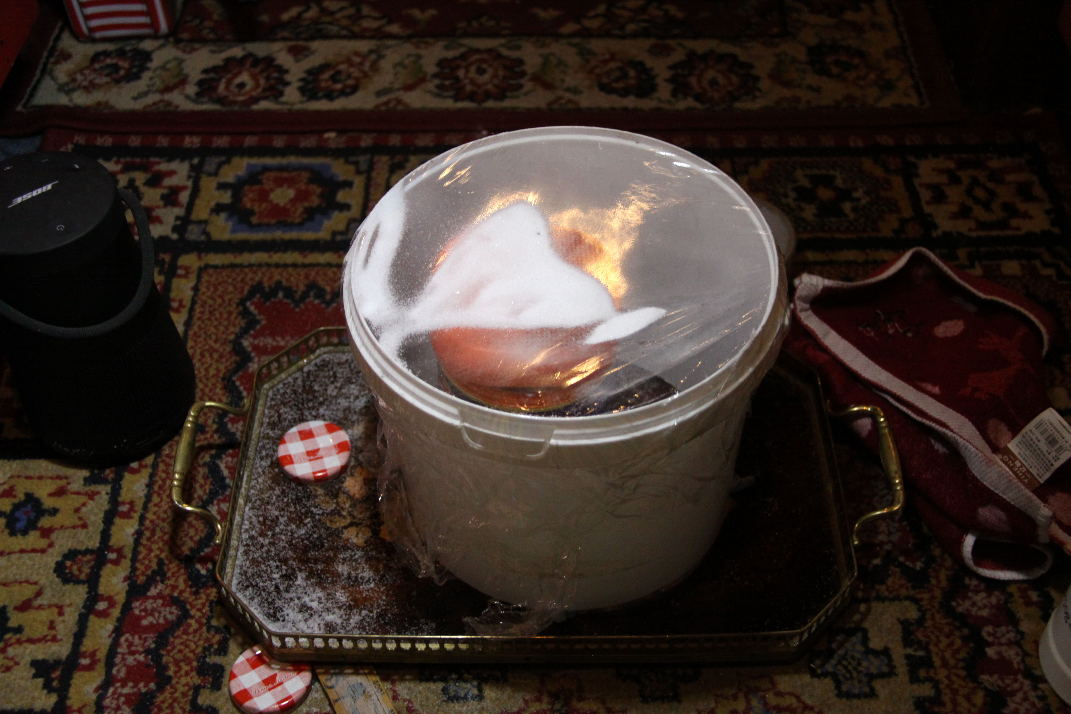 I did not entirely succeed, as I failed to generate beautiful shapes and patterns (cling film was impossible to tighten enough, and I didn’t have better material to work with).