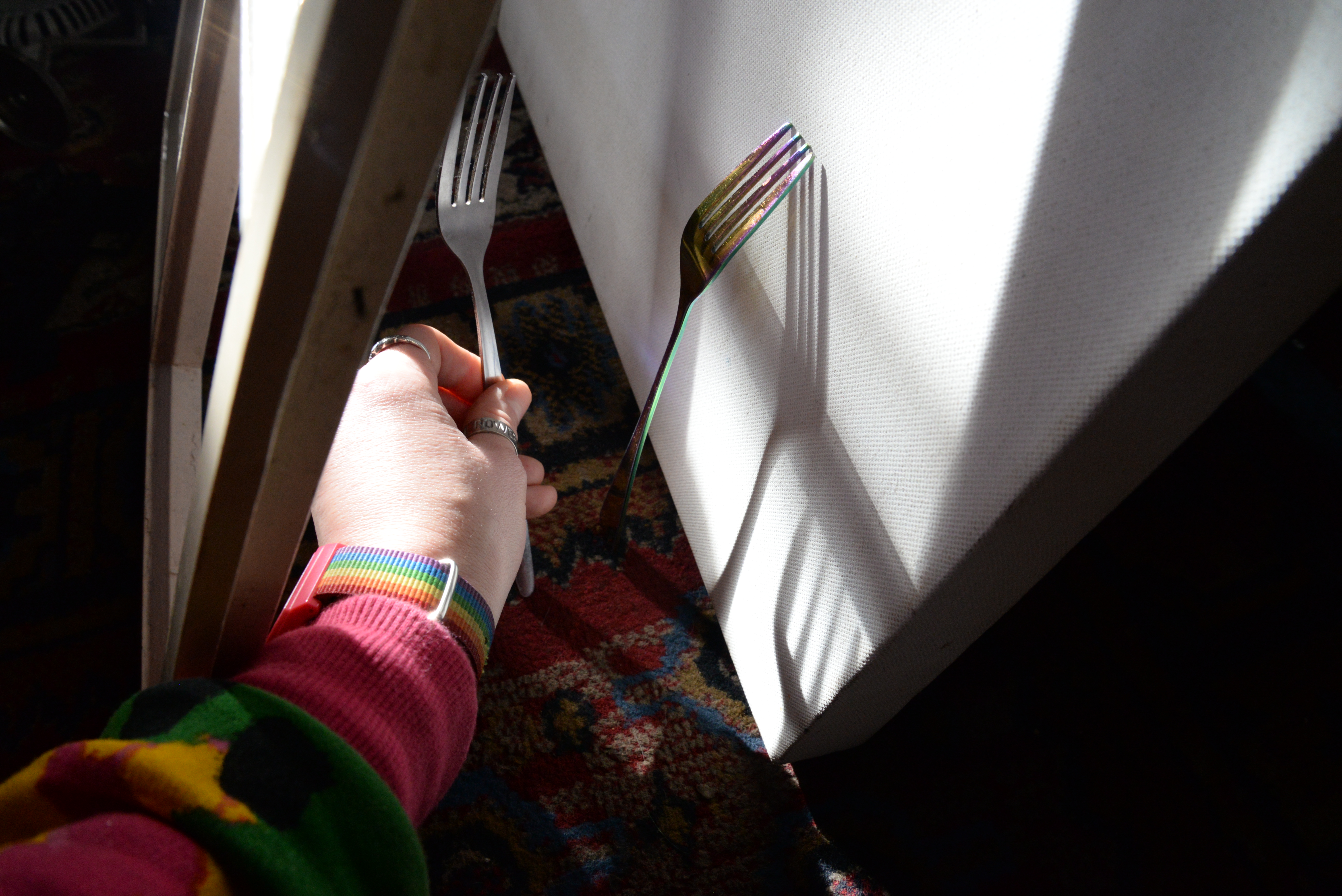 Forks and light.