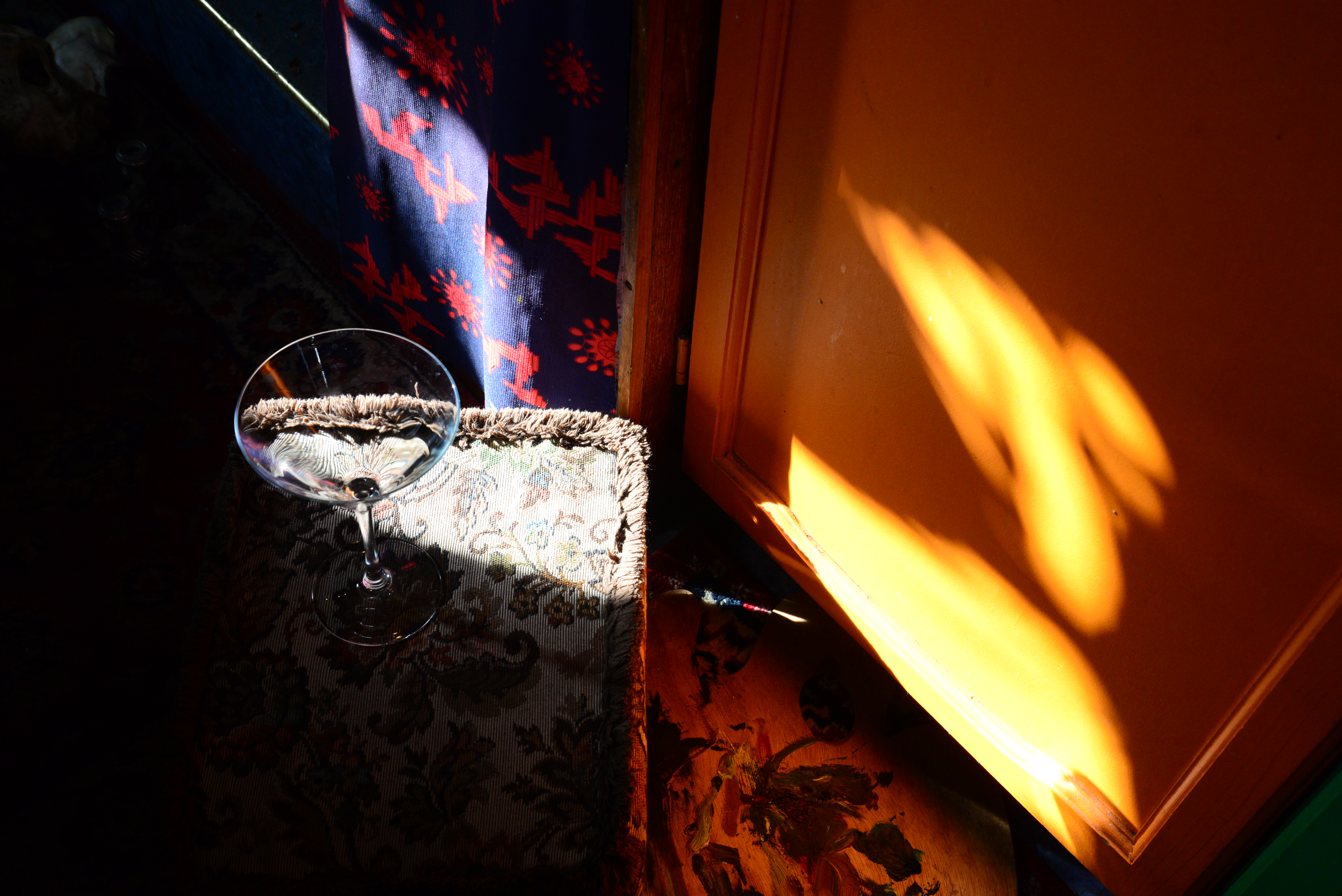 Tap and water drops. I have not planned the photo that emerged at all. I set up my little station and started to experiment. As I was arranging it, a few drops of water came out of the tap unexpectedly, I noticed it and decided to shoot in that direction. However, I found the image missing something and the drops blending into canvas too much. I resolved to put a few drops of grenadine in them to give them red colouring, it worked like magic and the image, however completely unplanned, came together wonderfully. I think it’s my favourite thing to just go with the flow like this, feeling like no other!