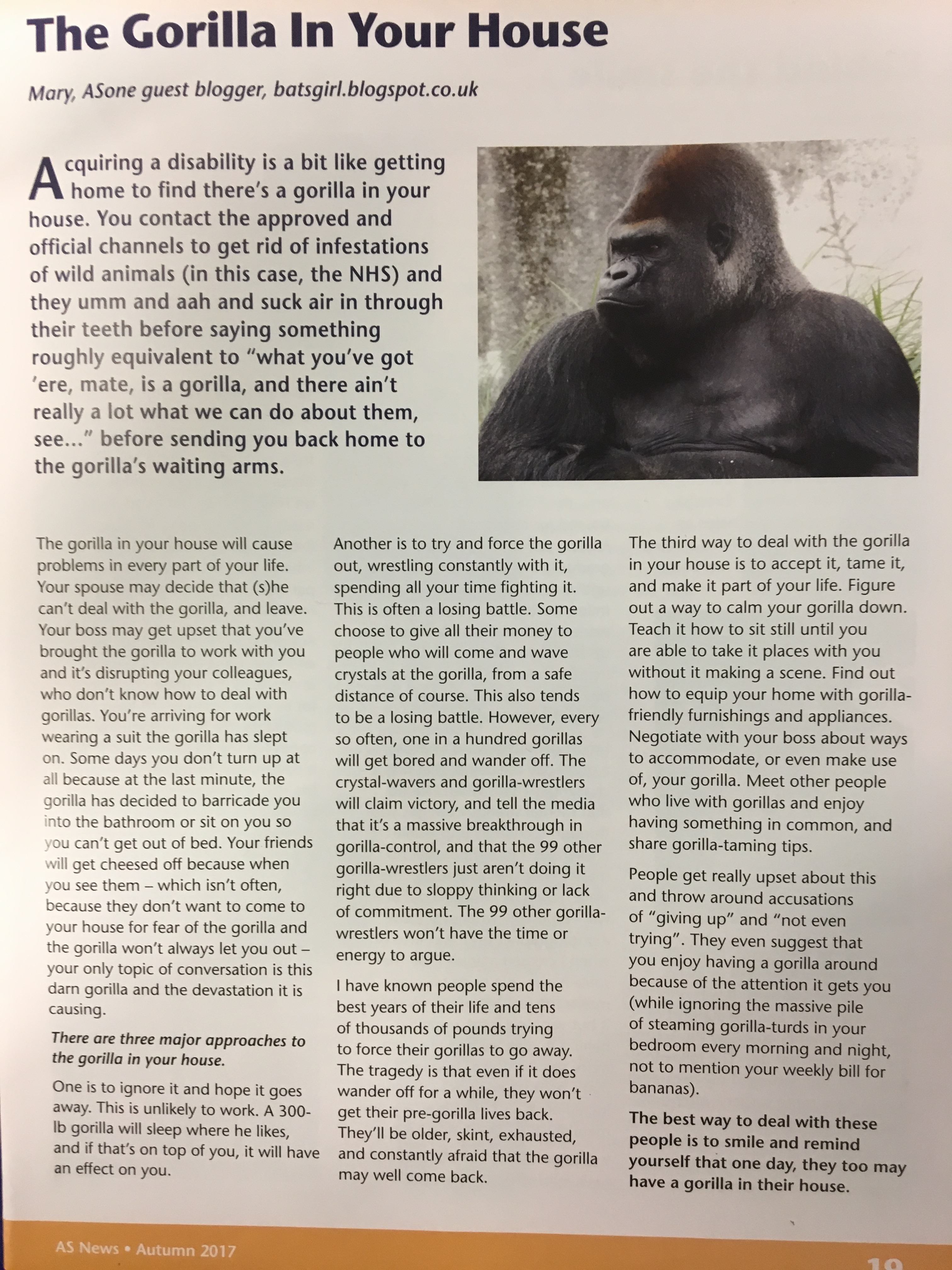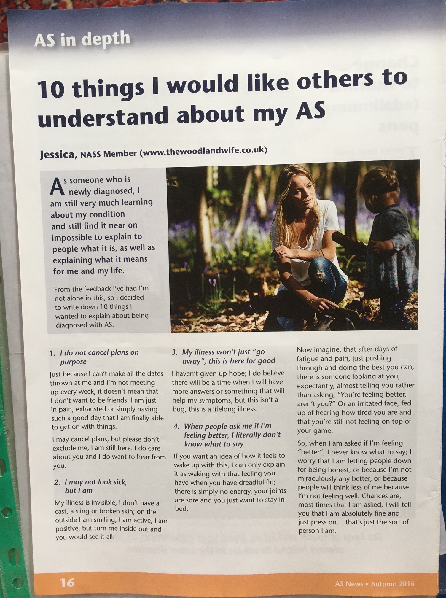 I read some interesting articles forwarded by Sarah, which gave me insight into how life looks like for people affected by AS.