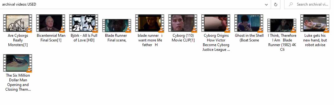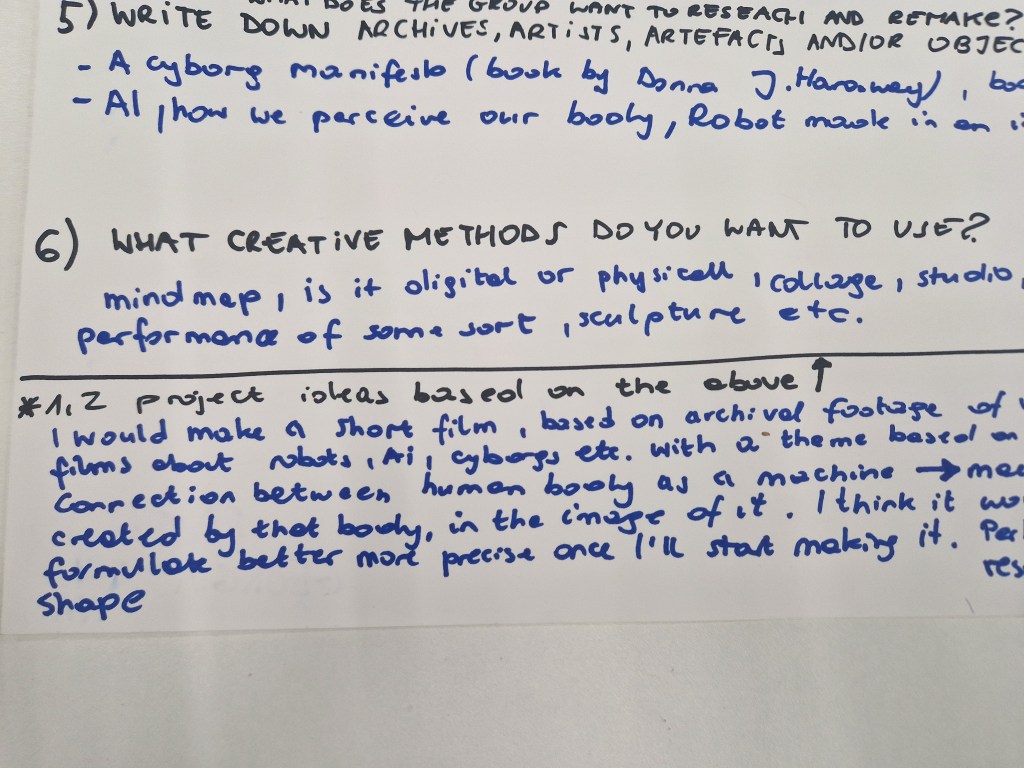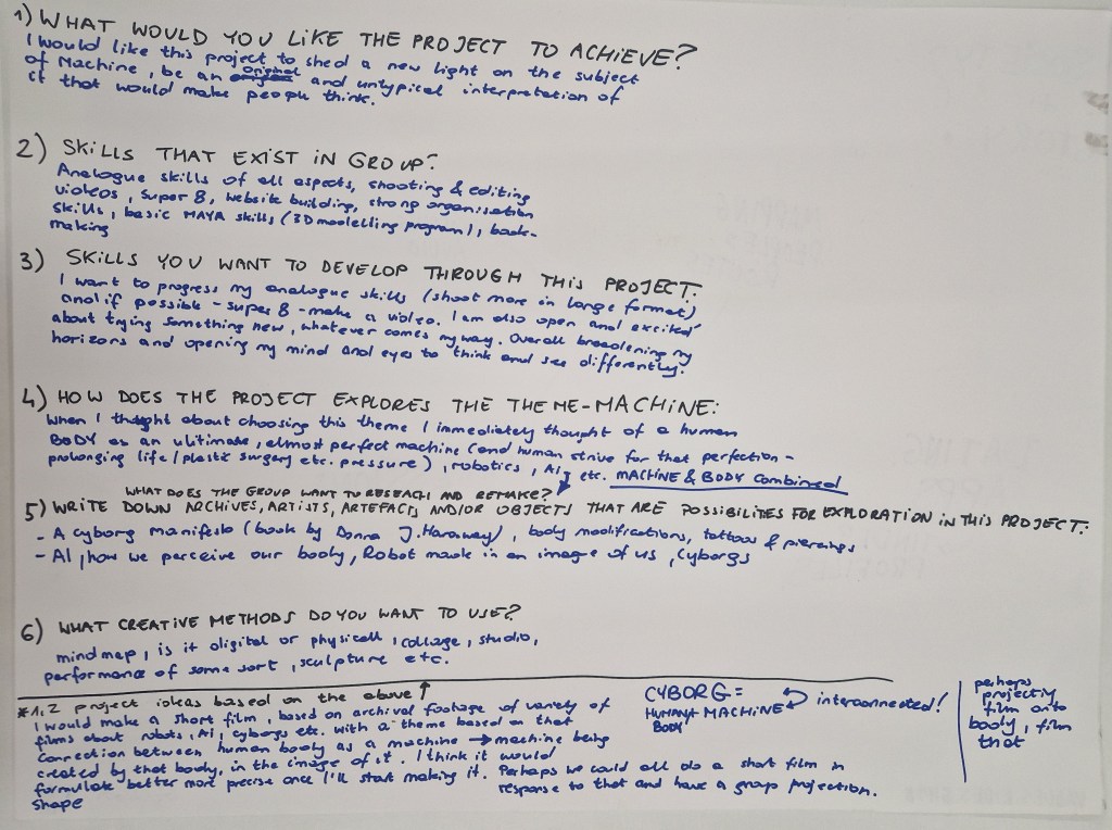 I would like to make a short film based on archival footage of a variety of films about robots, AI, Cyborgs etc. with a theme based on that connection between the human body as a machine – a machine being created by that body, in its image. I think it would formulate more precisely once I start making it.