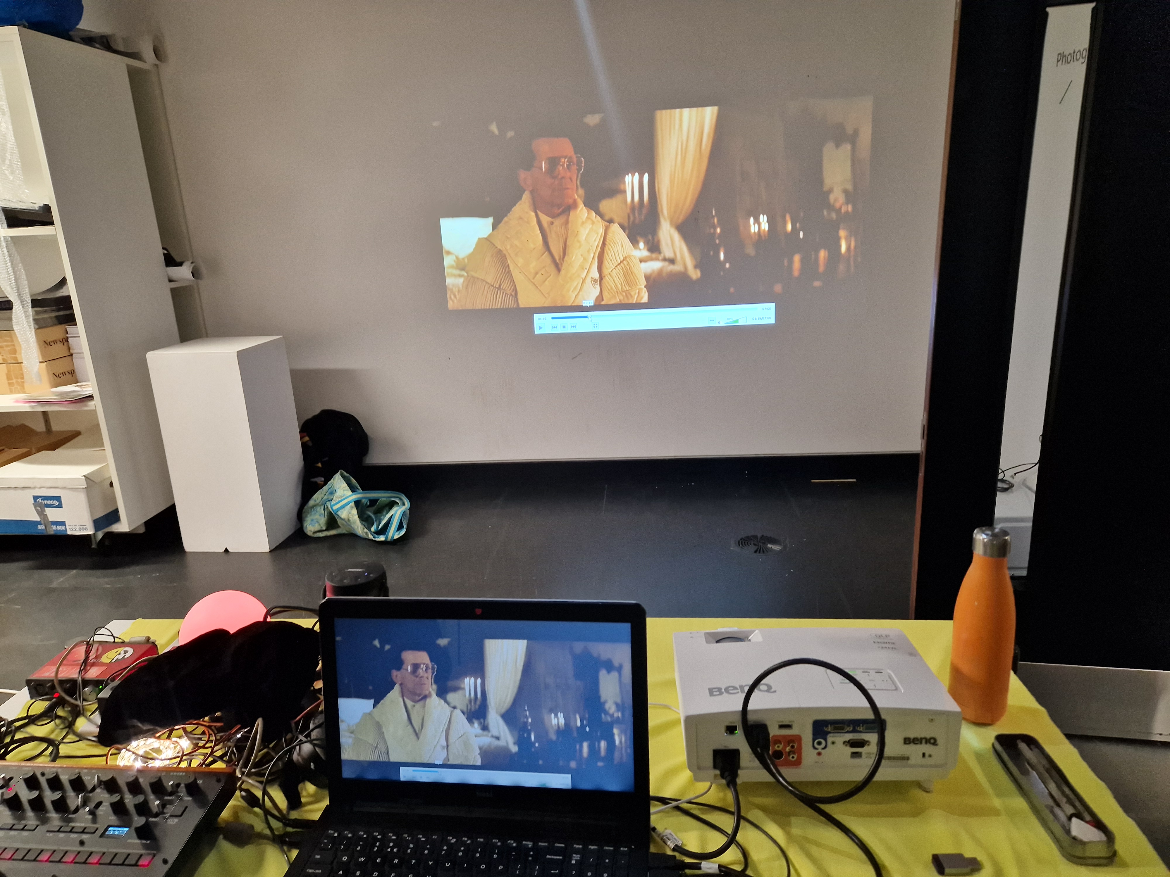 After considering a few options, I decided to project my short film accompanied by a live set on a KORG monolog synthesiser.