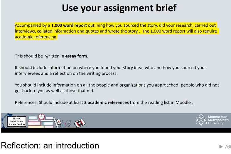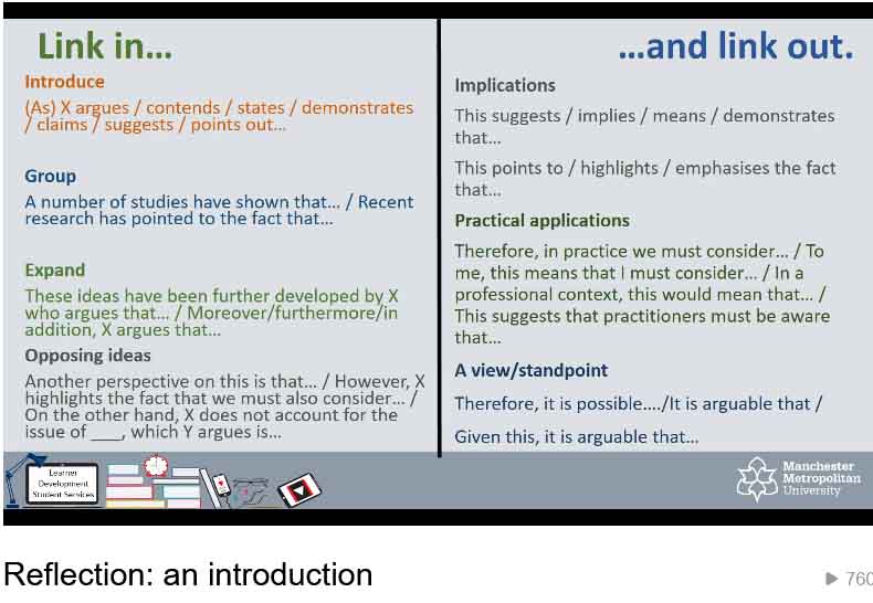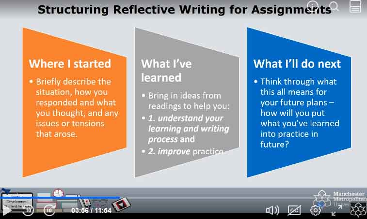 Reflective Writing. The Writing Center at MTSU. [Online video] Available through YouTube [Accessed on 27/10/23] https://youtu.be/ME8BrEVa7yU?si=lw0Ei2FT3LgsK52N